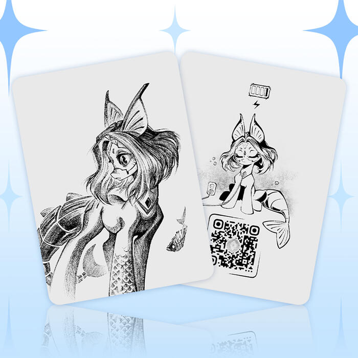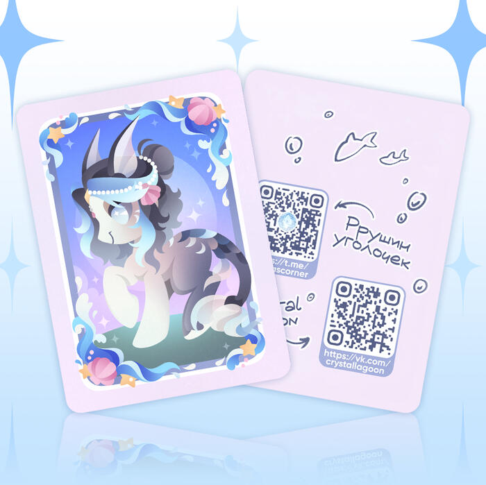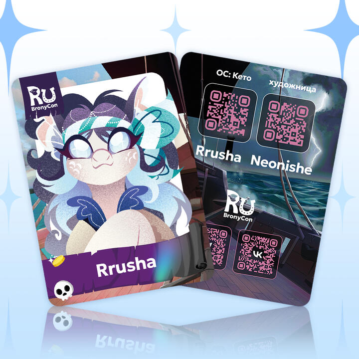 Карточка с портретом Кето в стиле стикеров с ней же. Картон имеет лёгкое перламутро-голубое сияние.